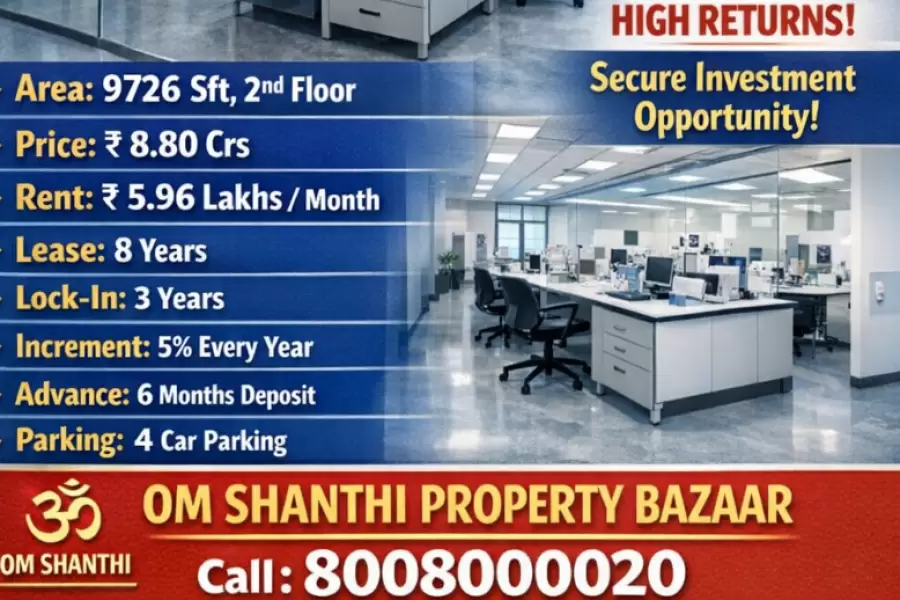 Sale of commercial property REPUTED LAB Tenant at GENOME VALLEY, Near SHAMEERPET, Area:9726 sft,2nd floor,Price:8.80crs,Rent:5.96 lakhs, Lease:8 years,Lock in :3 years,Increment:5% every year,Advance:6 months,Parking:4car,UDS:600 S.YARDS.